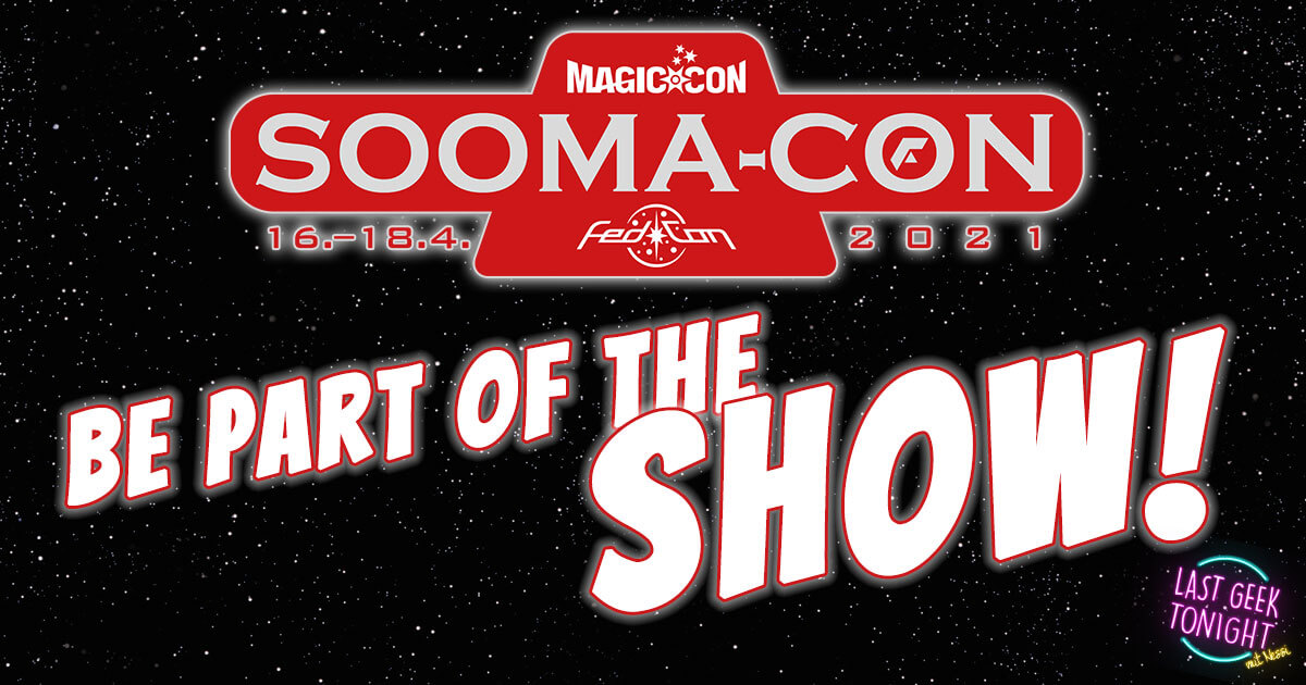 Für alle, die es im Stream verpasst haben: Haltet Euch das Wochenende vom 16.-18.4. frei, denn da veranstalten wir mit der FedCon und MagicCon gemeinsam die SOOMA-Con!