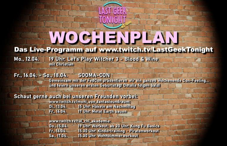 Live auf https://www.twitch.tv/lastgeektonight und danach auf unserem YouTube-Kanal unter https://www.youtube.com/channel/UCsaSG3 ... KUHtEFyvAQ