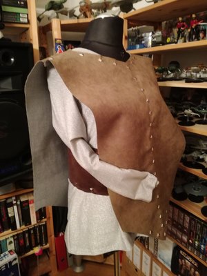 Das zweite Kostüm hat auch schon das Shirt, das Leder-Oberteil braucht noch die Nieten. Die hoffentlich heute ankommen, dann kann ich morgen den ganzen Tag dran arbeiten. Dann wäre das eigentlich auch komplett.