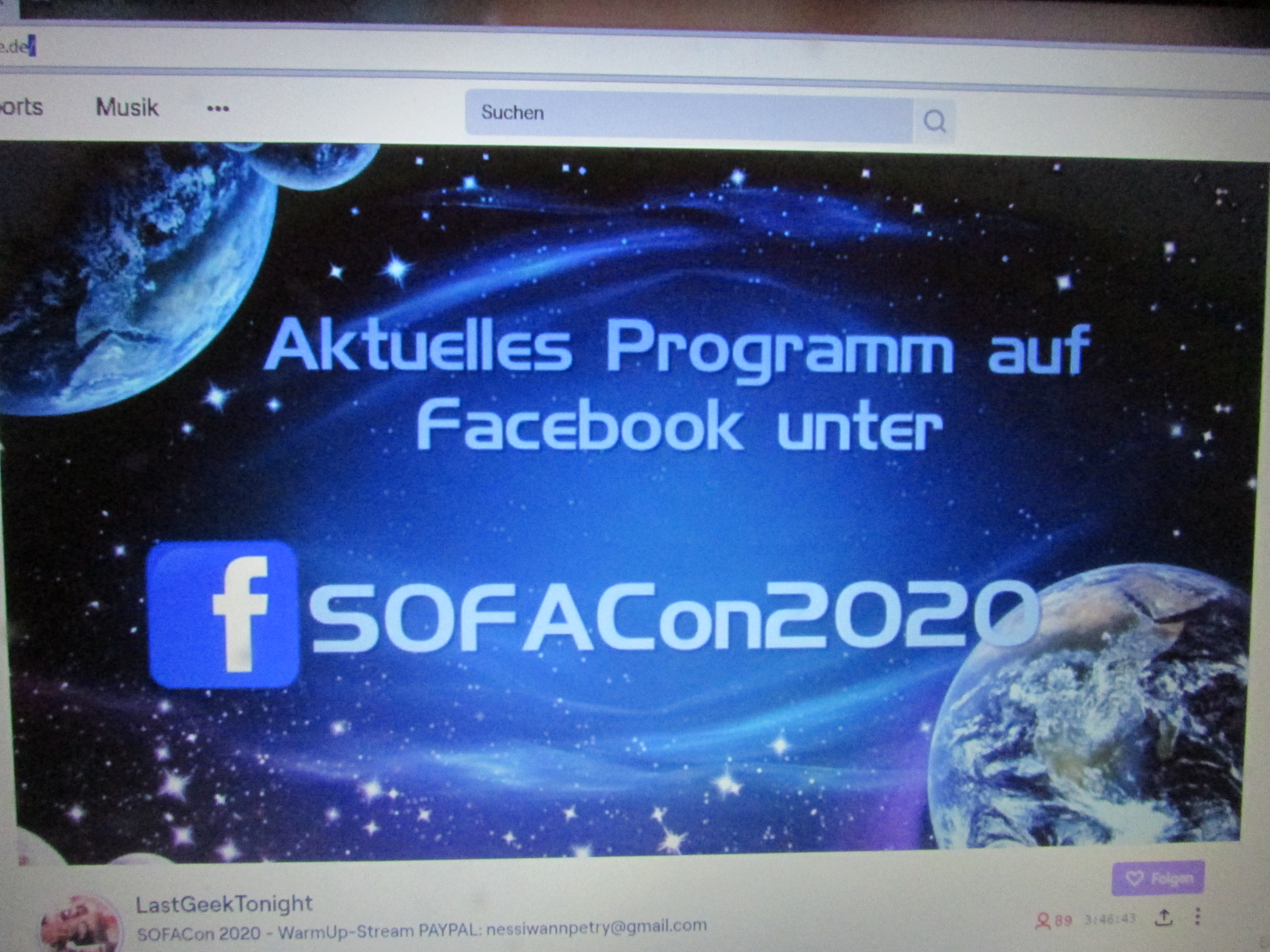Fotos & Videos von euch an diesem Wochenende - bitte schicken an: sofacon2020@gmail.com