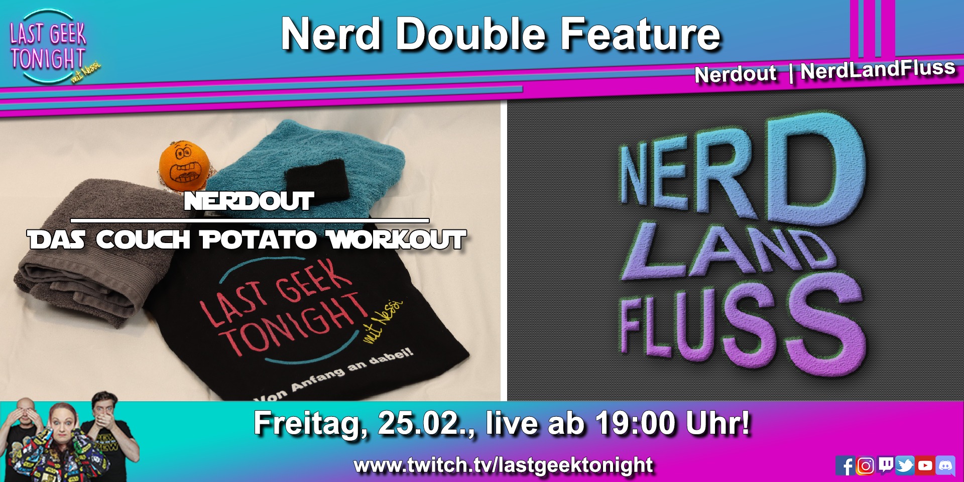 Thema ist: Last Geek Live - NerdOut - Das Couch Potato Workout - mit Captain Josway und Mister Quock - 11.02.2022