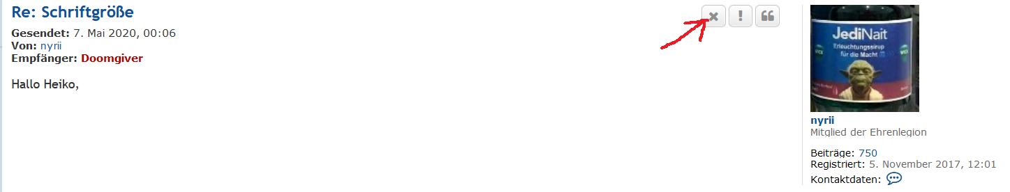 Du hast auch die Löschen-Funktion in der Nachricht selbst genutzt?