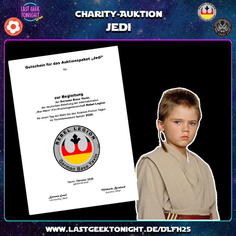 Gemeinsam verbünden sich die German Base Yavin, der Jai’Galaar-Clan und Last Geek Tonight, um der guten Seite zu dienen und Geld für den guten Zweck zu sammeln!