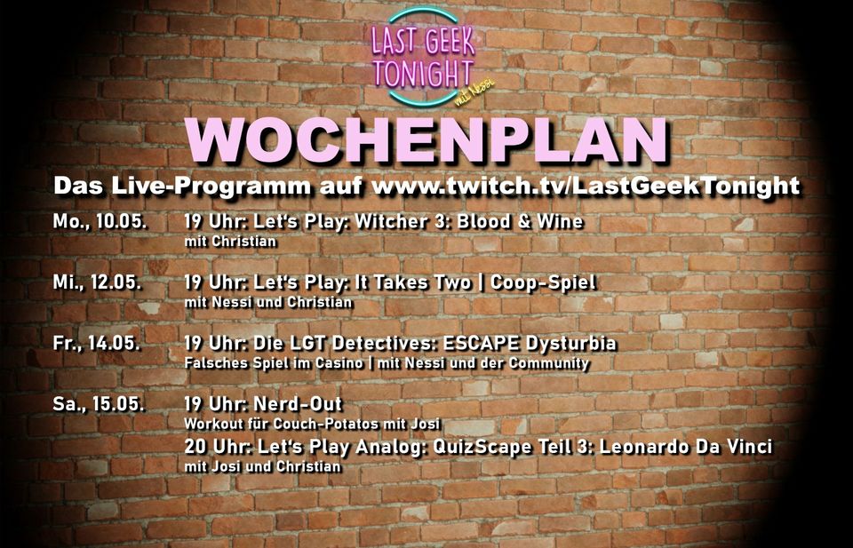 Unser Wochenplan auf www.twitch.tv/lastgeektonight: