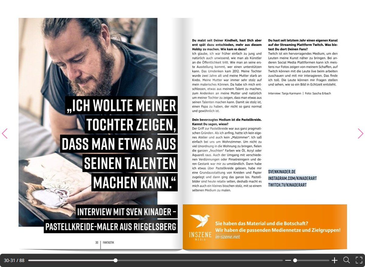 Sven hat ein Menge an Bildern, die er verkauft. Er macht auch Bilder im Auftrag. Instagram === KinaderArt