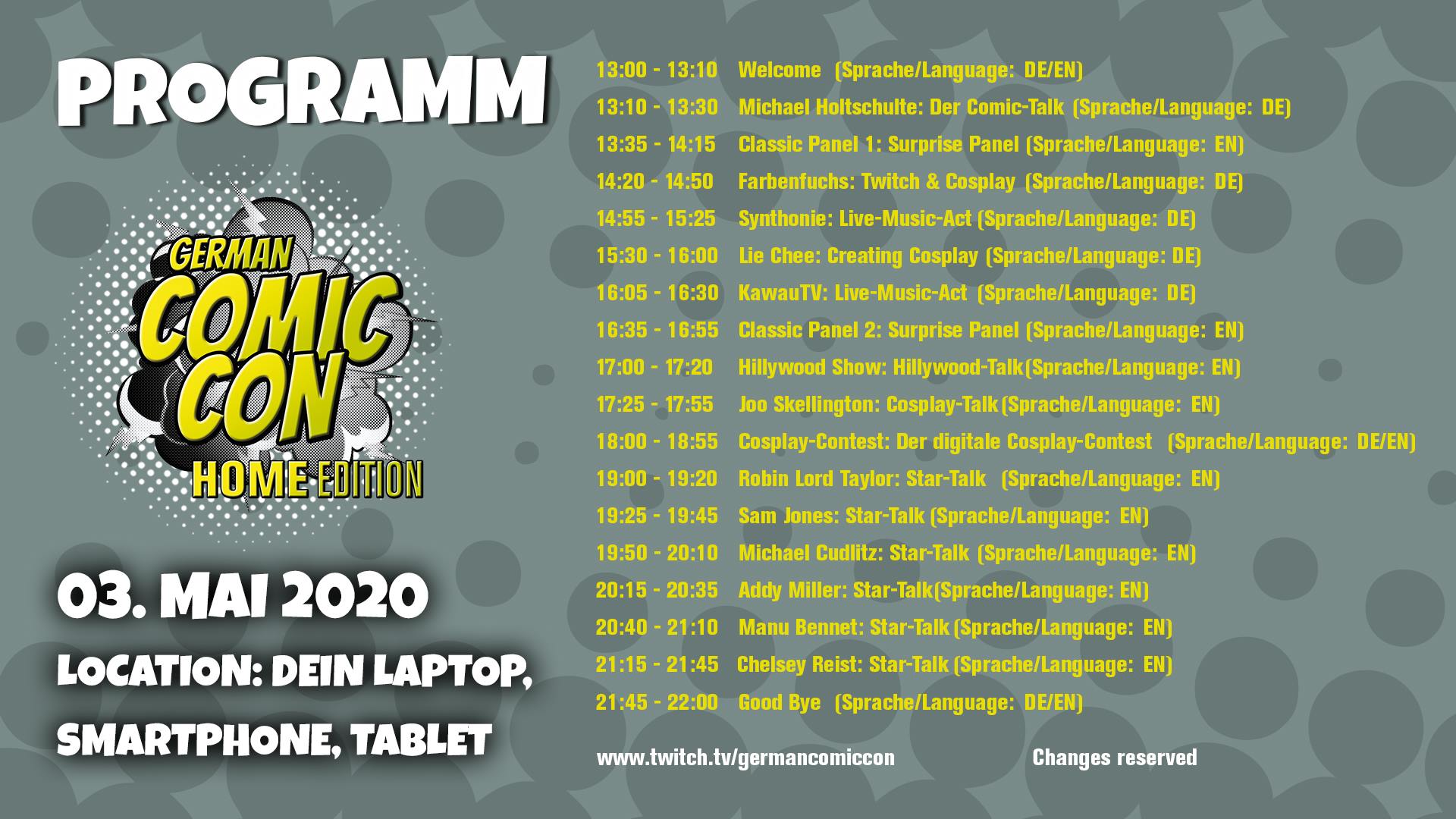 German Comic Con - Home Edition am 3. Mai auf unserem TWITCH KANAL https://www.twitch.tv/germancomiccon!