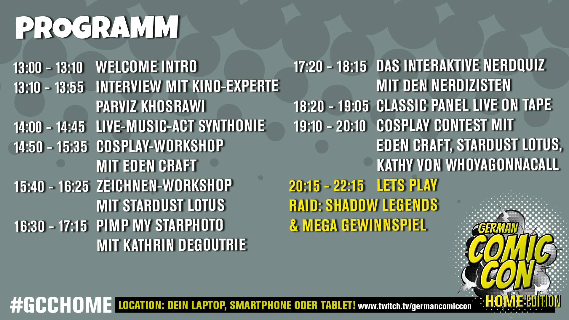 Den Stream könnt ihr euch anschauen >>> www.twitch.tv/germancomiccon