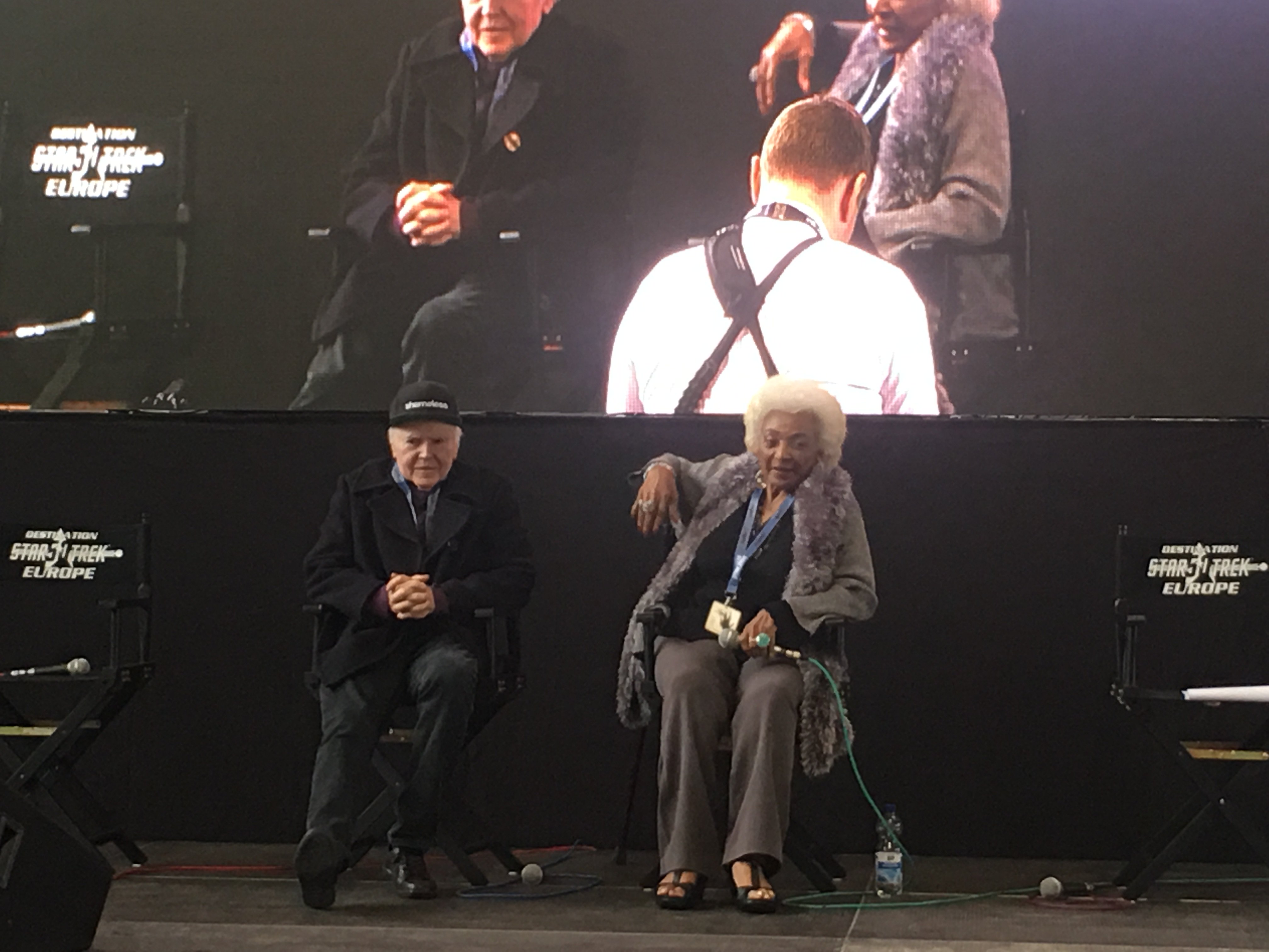 ) gesehen. Die drei saßen auch durch Barrieren ein wenig abgetrennt und ich weiß nicht, ob man an die in ruhigeren Zeiten für ein Schwätzchen dran kam. Jedenfalls wage ich das bei Shatner zu bezweifeln.